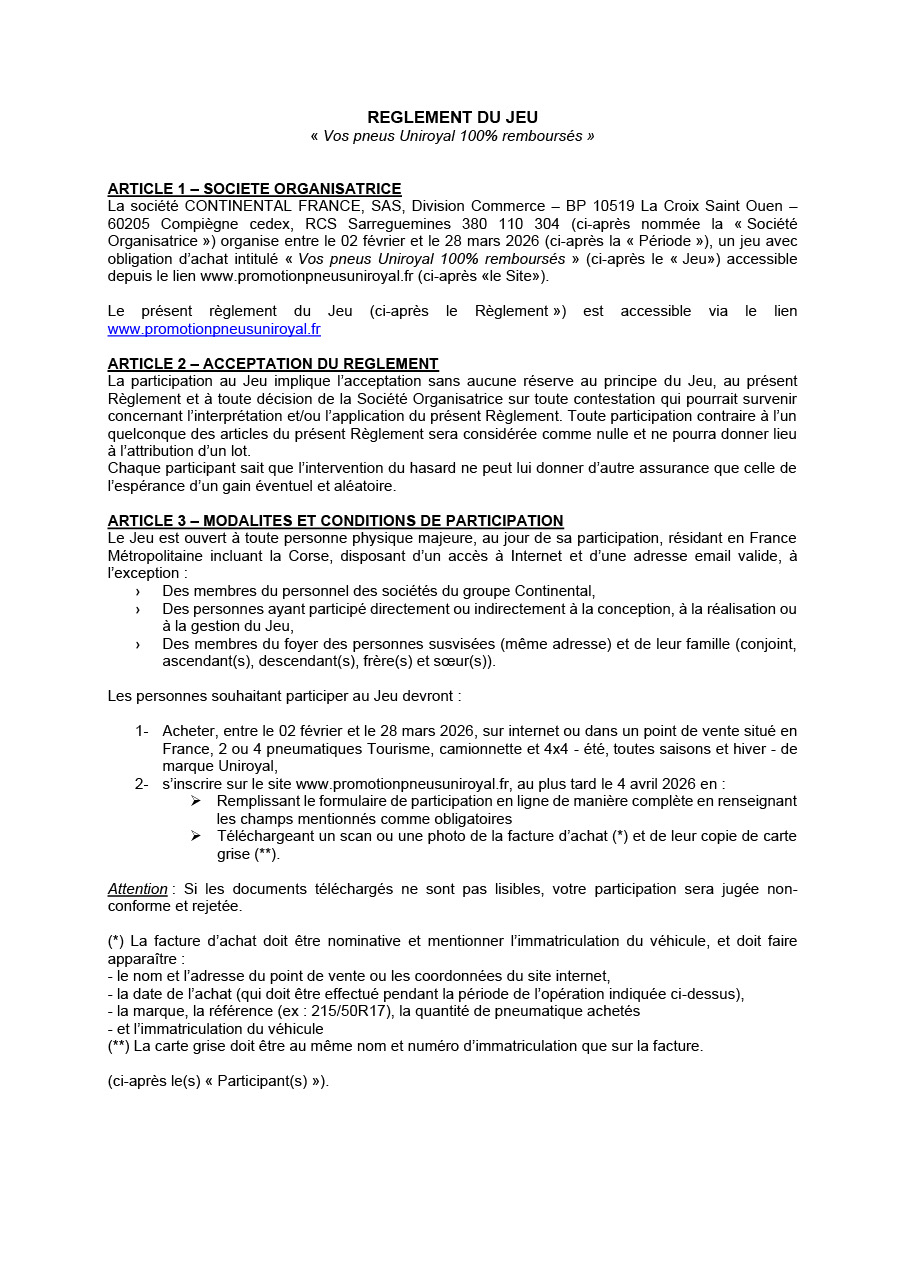 Avec Uniroyal, roulez en toute sérénité — et tentez de rouler gratuitement !